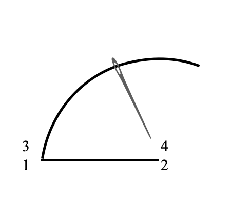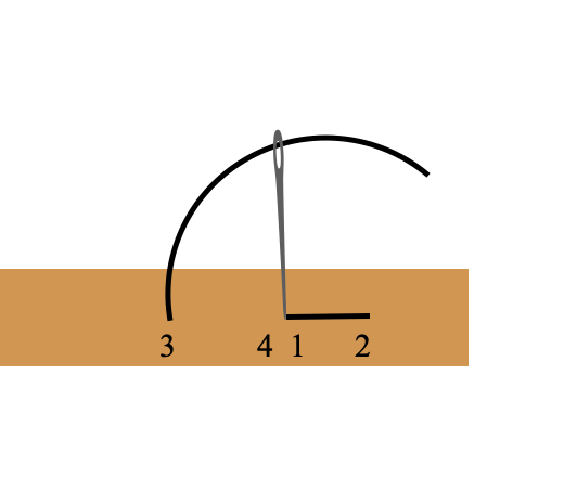For the pupils on my dolls and platypuses, I use a satin stitch. A satin stitch is good for filling in an area with a series of smooth stitches. It works best for small areas. With a large area, the stitches will either be too loose, or they will bunch up the fabric.