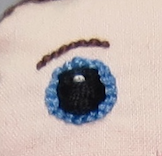 To make a satin stitch, you bring your needle up through the fabric on one side of the area you wish to embroider and then make a stitch across to the opposite side. Your next stitch comes up just above your starting point and goes across to just above the end of your previous stitch. Continue in this fashion until you have filled in the entire pupil.