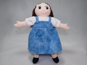Eileen is a soft friend made in the classic rag doll style. Each unique doll has a hand-embroidered face, yarn hair, and jointed arms and legs. A removable, hand-hemmed dress with an easy hook-and-loop tape closure is included with each doll.
