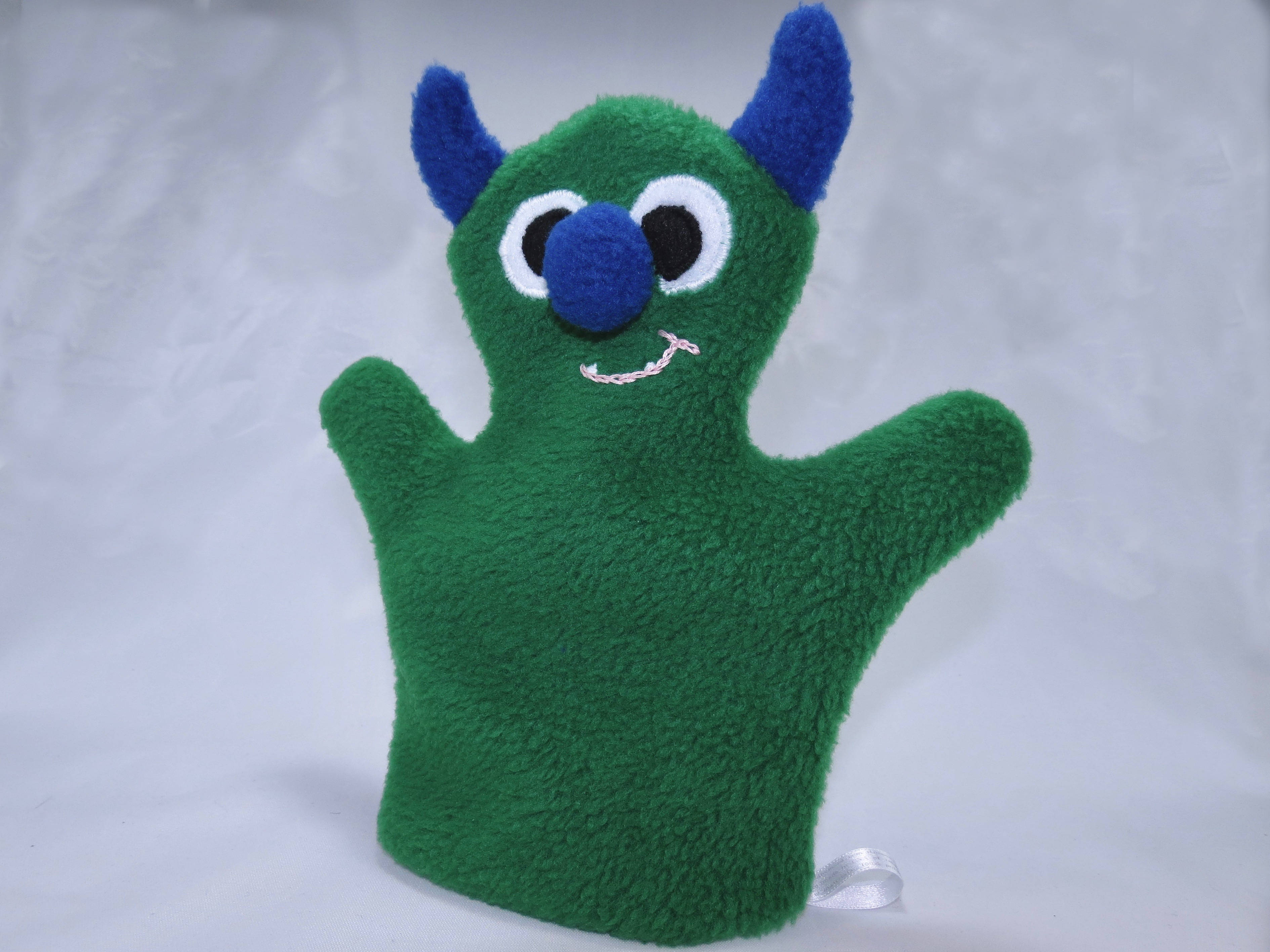 This friendly monster is a delightful hand puppet, perfect for imaginative play! Hand-embroidered features enhance its charm.